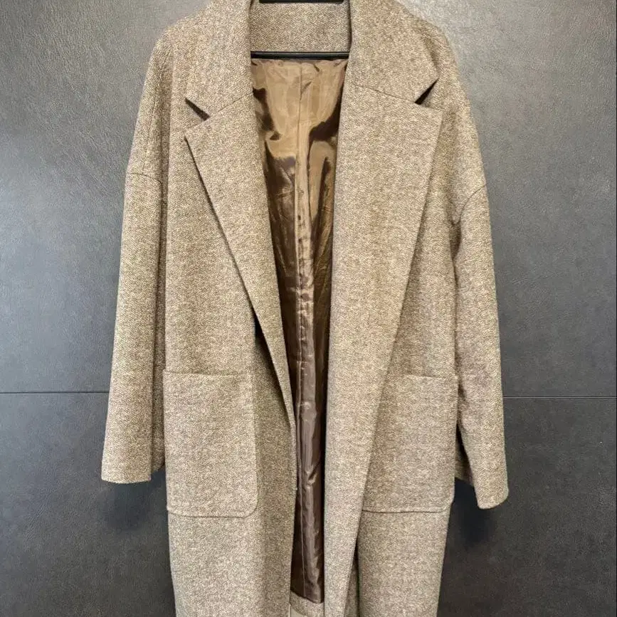 트렌디한 헤링본 무늬가 눈길을 끄는 가운 코트입니다.