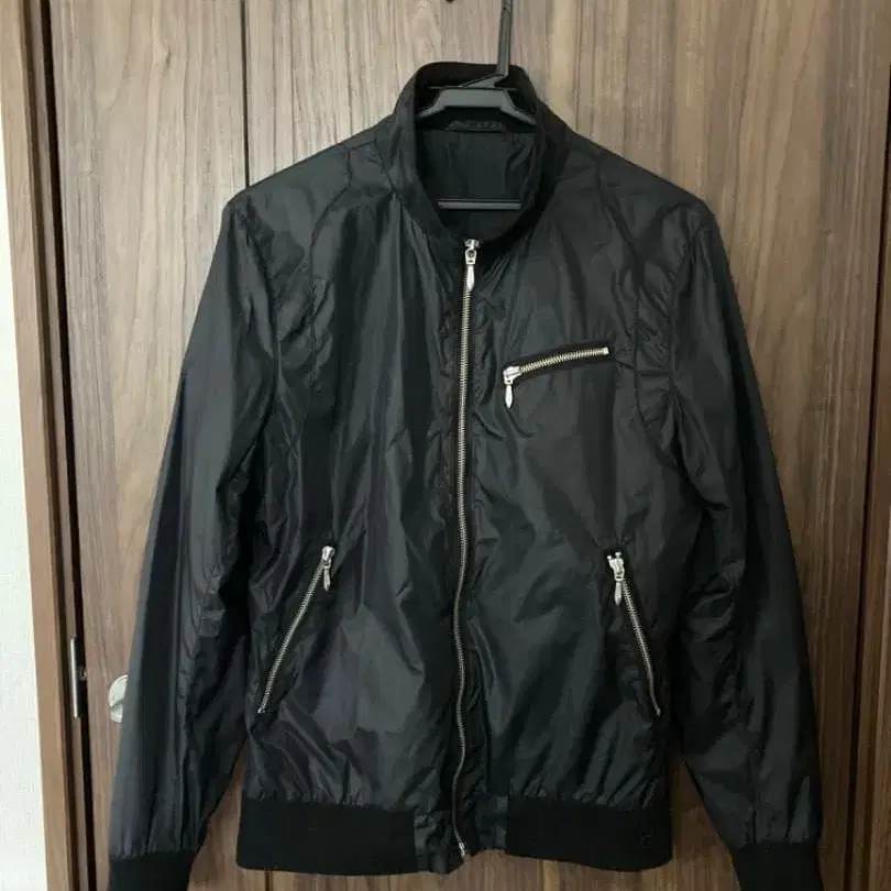 나일론 소재의 스탠드 카라, 지퍼 포켓이 달린 블랙 자켓. - 색상: 블랙 - 디자인: 지퍼 포켓 부착 - 소재: 나일론 - 스타일: 스탠드 카라 - 밑단: 리브 - 백 디자인: 심플 - 안쪽: 카라 부착 방문해 주셔서 감사합니다. 색상 - 네이비 계열 소재 - 나일론 얼룩, 찢김, 냄새 등 - 없음