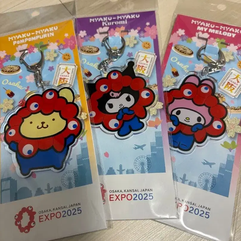 산리오 x 미야쿠미야쿠 아크릴 키링 폼폼푸딩, 쿠로미, 마이멜로디 위 3종 세트입니다. 초기 구매 시 흠집 등 미세한 흠집을 신경 쓰이는 분은 구매를 삼가해 주시기 바랍니다. 오사카 간사이 박람회 산리오 미야쿠미야쿠