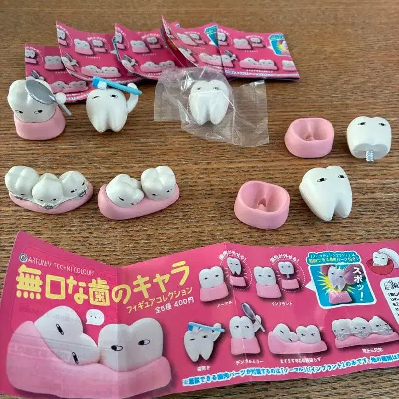 말이 없는 치아 캐릭터 피규어 컬렉션 전 6종 + 노멀 치아만 개봉만 하고 보관하고 있었습니다. 미사용이지만 자택 보관이므로, 약간의 흠집이나 얼룩 등이 있을 수 있습니다. 신경 쓰이시는 분의 구매는 삼가해 주십시오. 유패킷 포스트로 발송 예정.