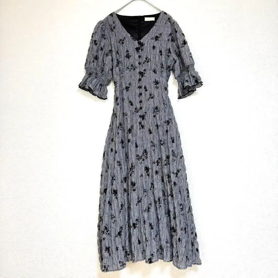 an mille 자카드 원피스 티어드 롱 원피스 깅엄 체크 싸개 단추