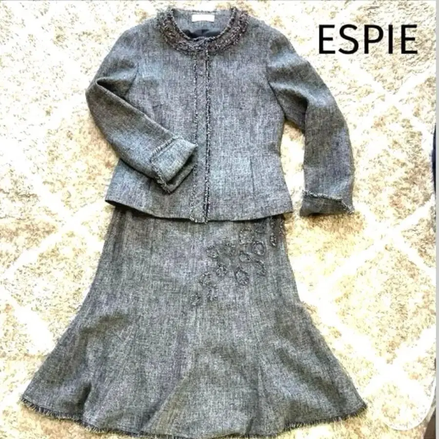 ESPIE의 트위드 소재 수트입니다. 소매의 접힘이나 스커트의 장식 등 귀여움도 있으면서 숨겨진 후크 등으로 고급스럽습니다. 사이즈: 40 자켓 어깨 너비: 39cm 가슴 너비: 49cm 기장: 53cm 스커트 허리: 36cm 기장: 60cm ※ 개인 측정으로 인한 약간의 오차는 양해 부탁드립니다. 소재: 코튼 50% 울 40% 나일론 10% *비고* 불명확한 점이 있으시면 댓글로 부탁드립니다. 작게 접어서 발송되므로 미리 양해 부탁드립니다. 프로필도 봐주시면 감사하겠습니다. ☺️ #수험 #보호자회 #학교방문 #면접 #비즈니스