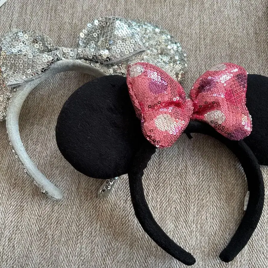 미니 마우스 머리띠입니다! 1번 사용했습니다! 핑크 리본 머리띠는 택을 잘라버렸습니다. 머리띠 자체에는 얼룩 없이 깨끗하다고 생각합니다.