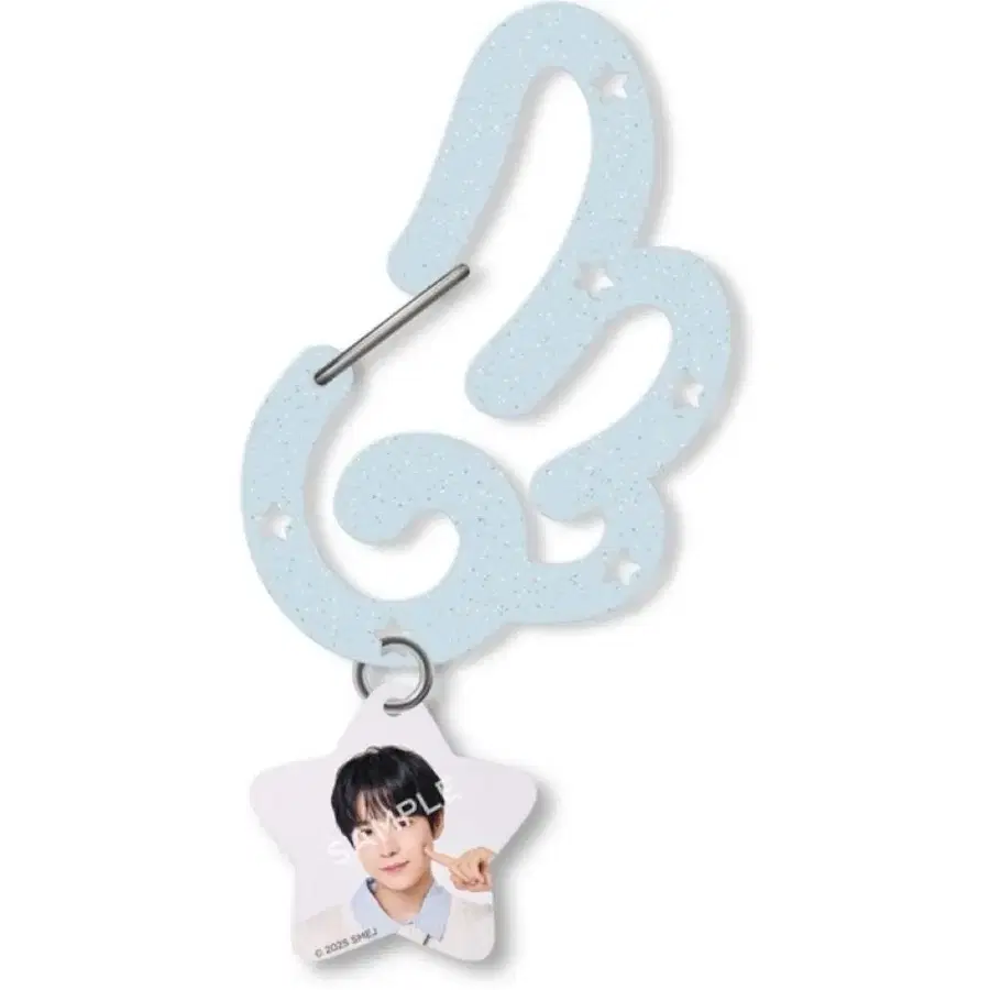 깃털 모양의 카라비너에, 새로 촬영한 사진 참이 달린 카라비너 키링입니다.