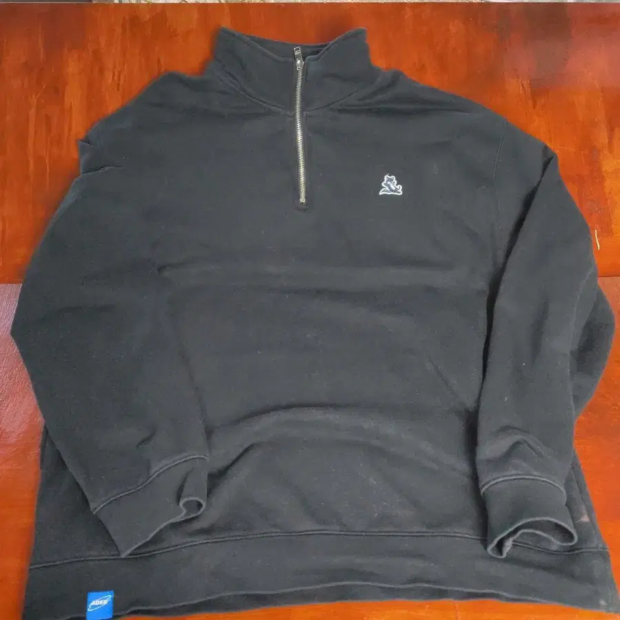 집업 디자인의 블랙 맨투맨, 자수 로고 포함. - 브랜드: ADER - 색상: 블랙 - 디자인: 집업 - 로고: 자수 캐릭터 사용감 있습니다. 방문해 주셔서 감사합니다.