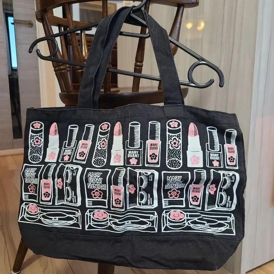 블랙의 마리퀀트 메이크업 디자인 백입니다. 안쪽에 포켓이 1개 있습니다.
