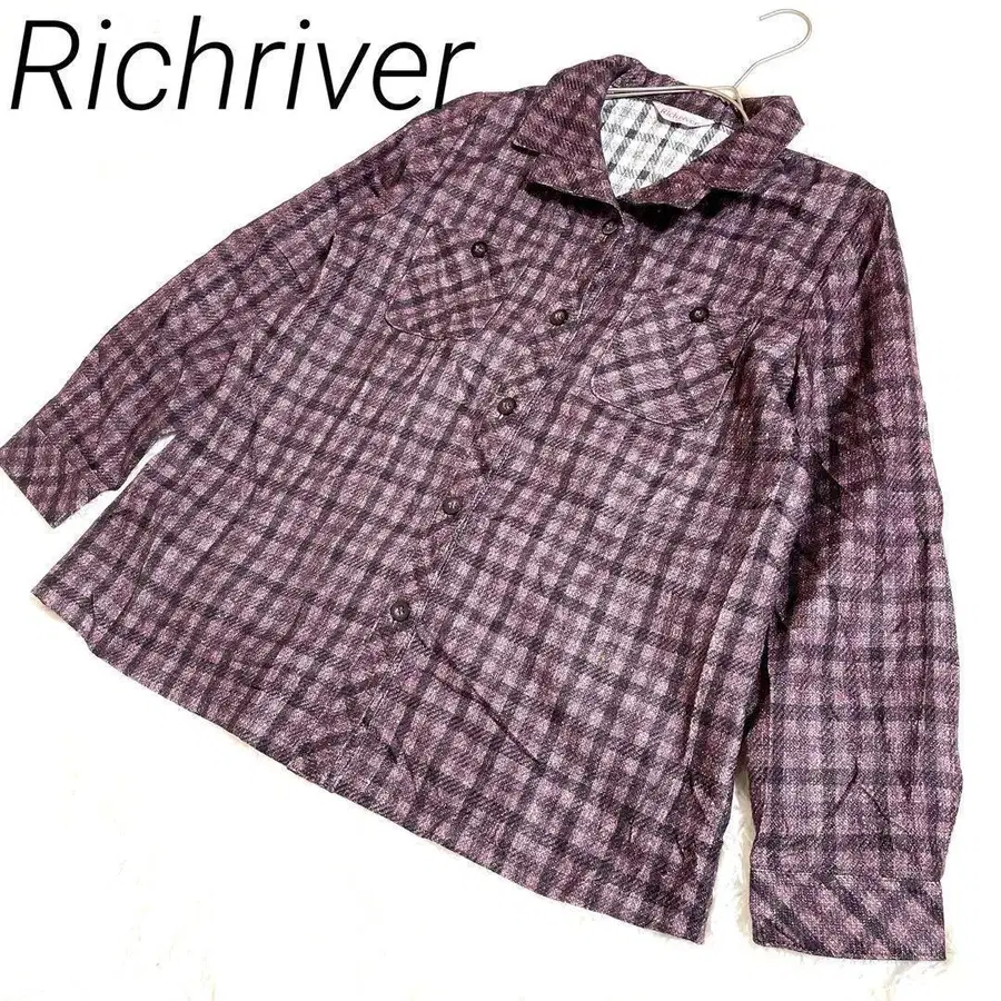 Richriver 보라색과 블랙 체크 무늬 긴팔 셔츠 L 포켓 버튼