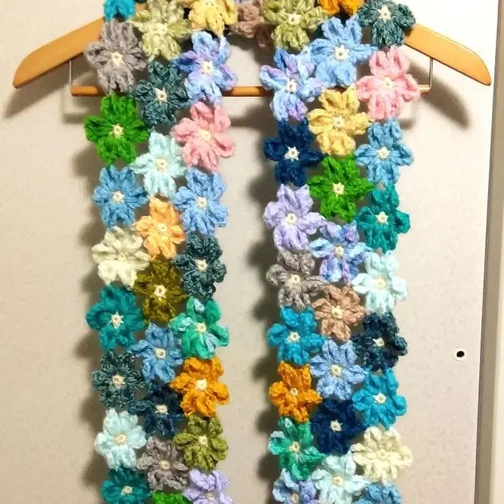 블루 계열 아크릴 & 아크릴 울 털실을 사용하여 만든 머플러입니다.
