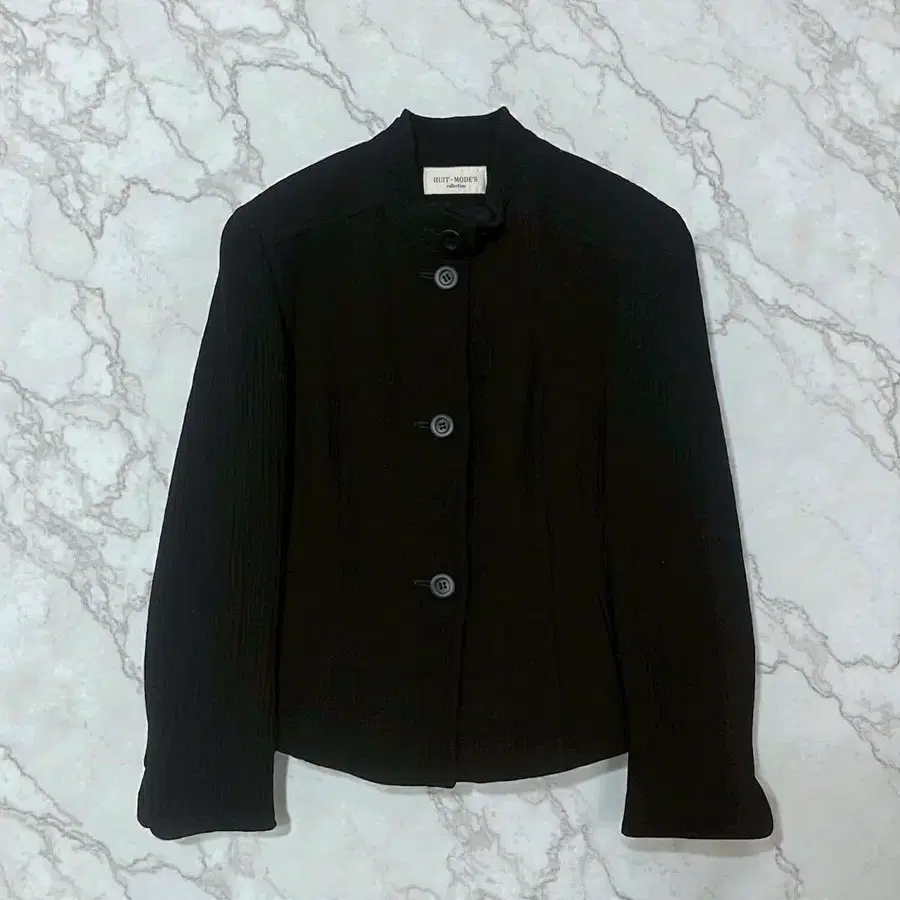 고급 울 100%를 사용한 HUIT-MODES의 노카라 자켓입니다.