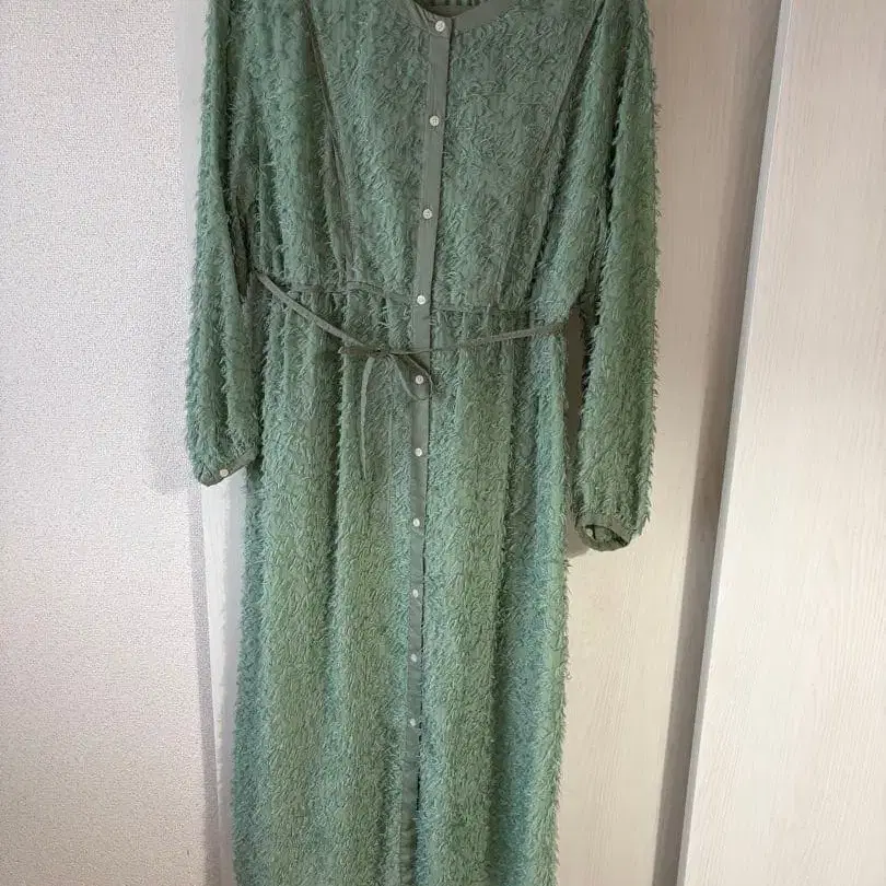 레이빔즈 프린지 리본 원피스 프리 사이즈 그린 페키 코트 포함