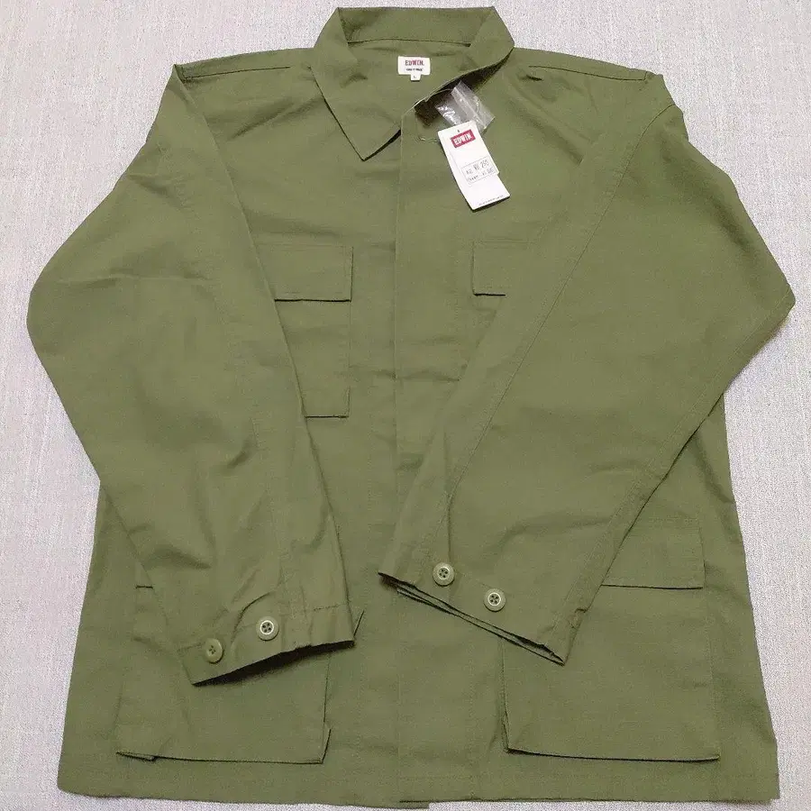 자동 번역되었어요. 원문보기올리브 그린 EDWIN 밀리터리 자켓, L 사이즈, 폴리에스테르 혼방 소재로 내구성 있음.