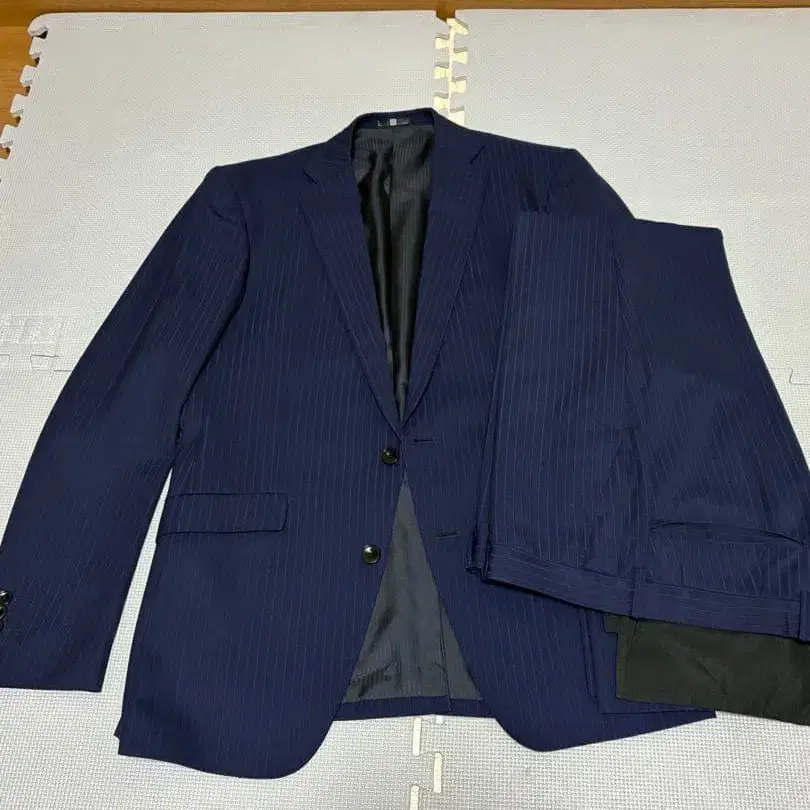 자동 번역되었어요. 원문보기네이비 스트라이프 디자인, 비즈니스 장면에 최적인 수트.