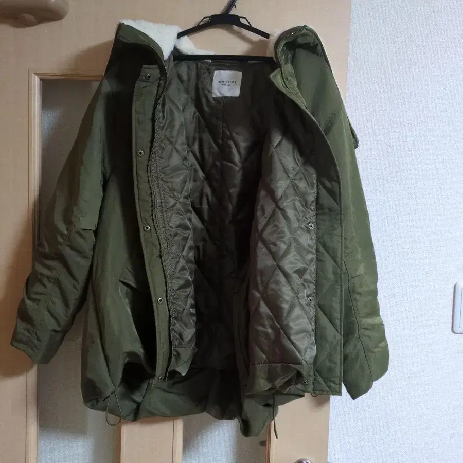 코트 안감은 퀼팅이지만, 약간 얇은 편이라 도톰한 니트나 맨투맨 등을 편하게 입을 수 있습니다.