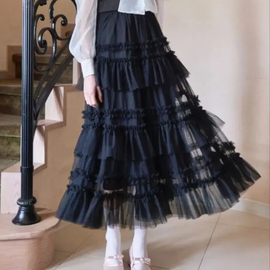 Lovilyn의 인기 티어드 샤샤 스커트 블랙입니다. 한 번 착용했습니다. 눈에 띄는 얼룩 등 없습니다. - 색상: 블랙 - 소재: 튤 - 디자인: 프릴이 달린 티어드 디자인 - 스타일: 롱 스커트 - 특징: 허리밴딩 방문해 주셔서 감사합니다.