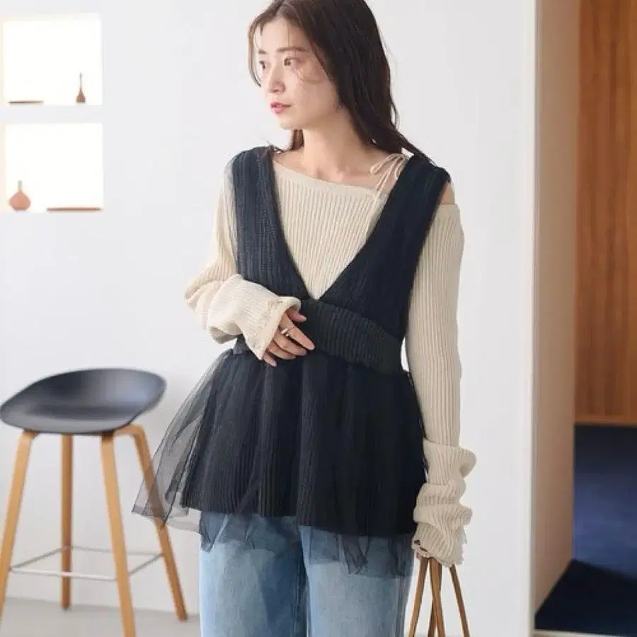 트렌디한 레이어드 스타일을 연출하는 튤 베스트