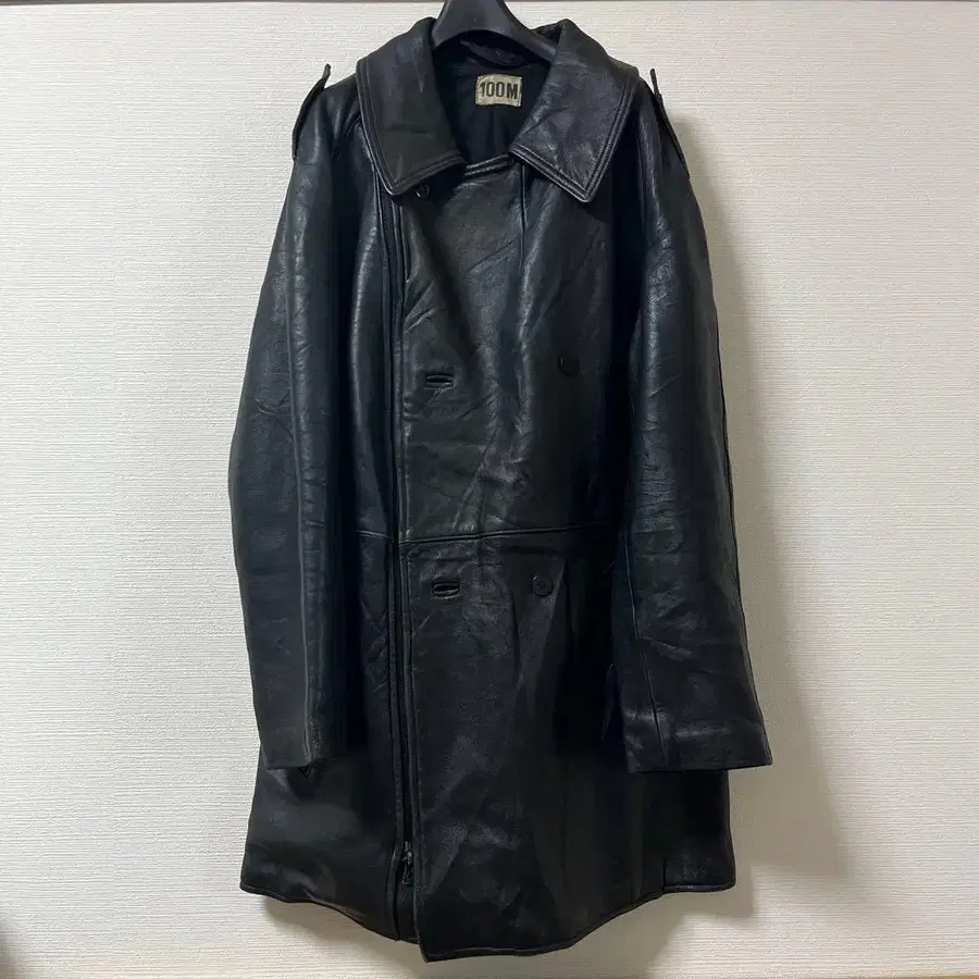 80s 프랑스군 실물 모터사이클 가죽 코트 라이더 더블 빈티지 밀리터리 100M