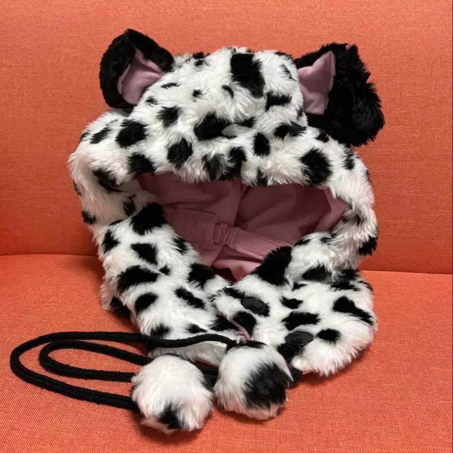 캐릭터 101마리 강아지풍 퍼 모자 화이트 블랙 물방울 패턴