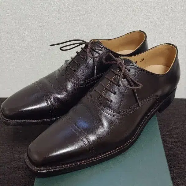 방문해 주셔서 감사합니다. [모델번호] 758 [컬러] 다크 브라운 [사이즈] 25cm [위즈] E [디자인] 스트레이트 팁 [제법] 굿이어 웰트 제법 [겉창] 탑 고무 가죽 밑창 상자는 없습니다. 상자는 촬영용입니다.