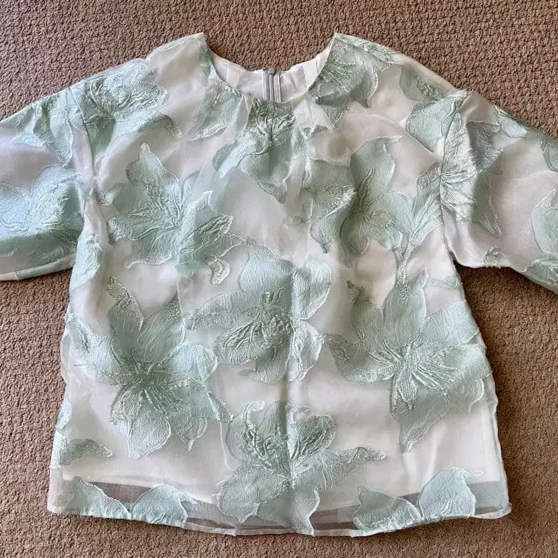 체스티 화려한 연한 그린 컬러의 반짝이는 블라우스 사이즈 1 프리 사이즈의 사이즈감 넉넉한 품 포멀한 자리나 데님에 맞춰 입으면 평상복으로도 착용 가능한 아이템