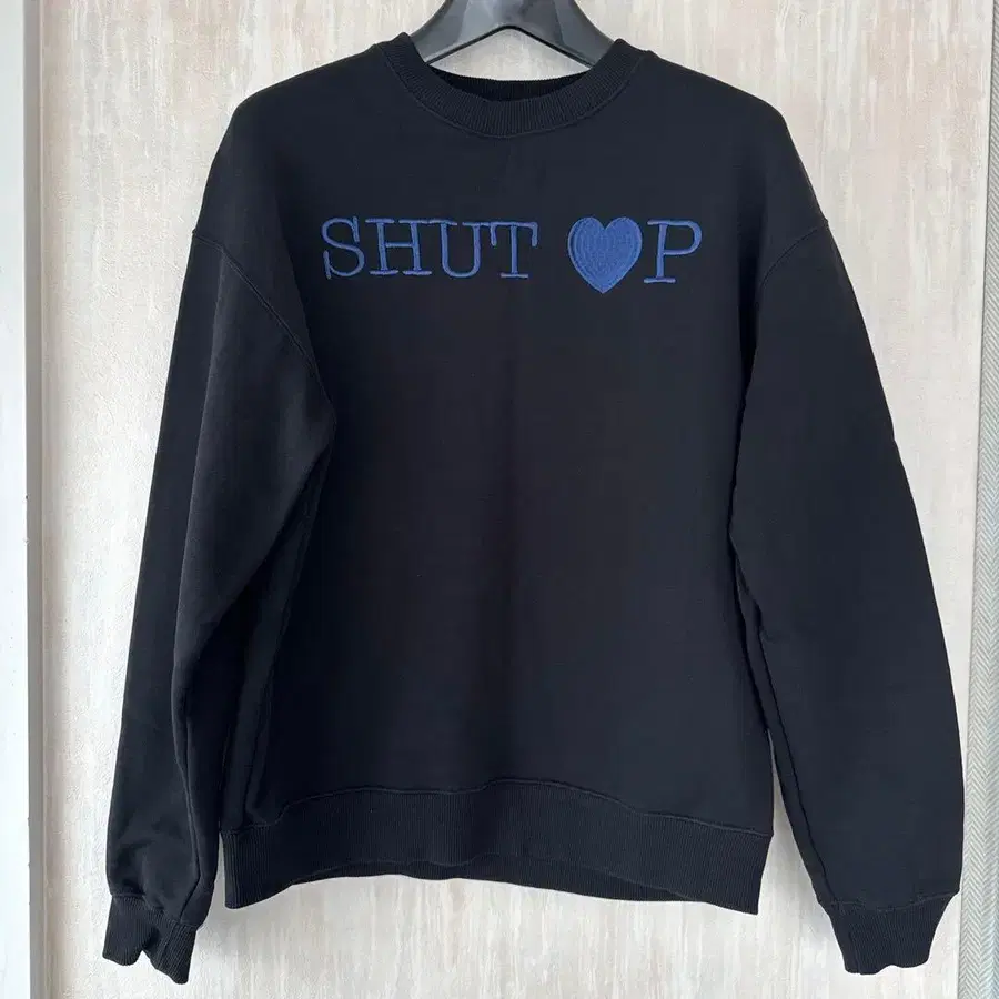 자동 번역되었어요. 원문보기앞면에 [ SHUT ♥ P ] 자수가 들어간 블랙 크루넥 트레이닝복.