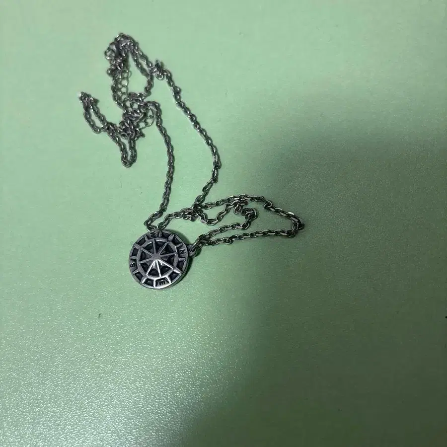 나침반 디자인의 금속제 목걸이. - 디자인: 나침반 모티브 펜던트 - 소재: 금속제 - 체인 타입: 얇은 링크 체인 - 펜던트 사이즈: 약 직경 2.5cm 구제 의류점에서 구매한 것입니다.