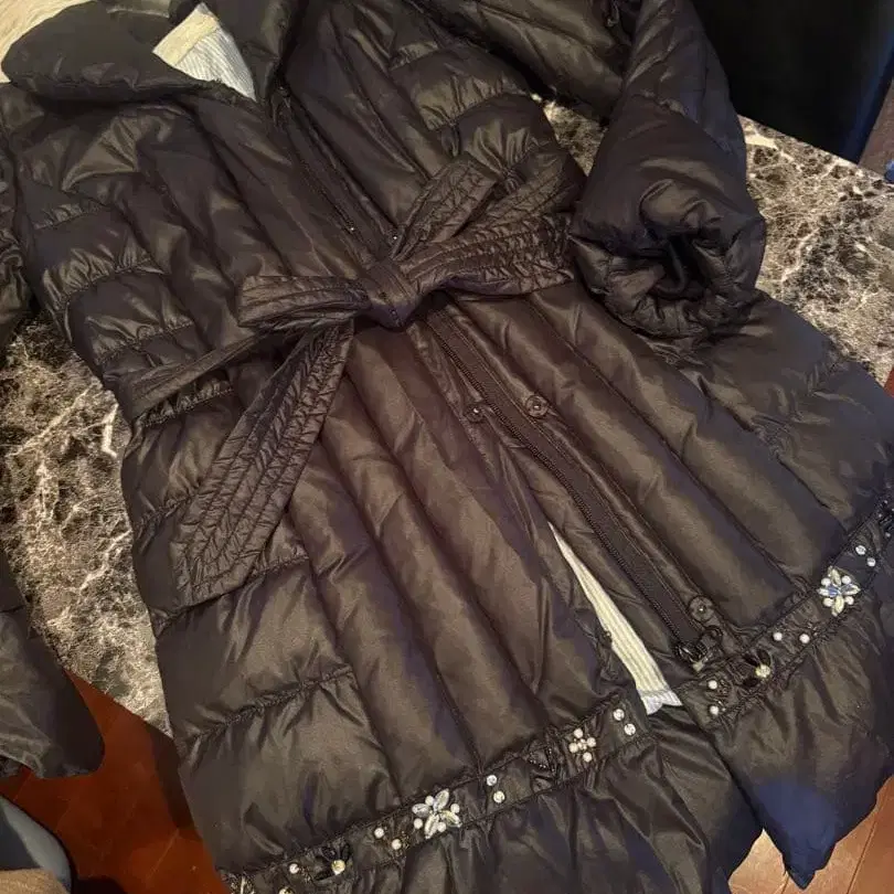 색상: 블랙 디자인: 후드 부착, 허리 리본, 프릴 밑단 사이즈 0/s 가슴 너비 47 기장 89 (개인 측정으로 약간의 오차가 있을 수 있습니다) 다운 80% 페더 20% 작게 접어서 발송될 수 있다는 점, 양해 부탁드립니다!