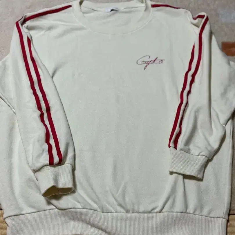 아이보리 스트라이프 디자인의 트레이닝복. - 브랜드: GYDA - 색상: 아이보리 - 디자인: 스트라이프 디자인 - 스타일: 트레이닝복 - 택: GYDA 방문해 주셔서 감사합니다. 사이즈 - FREE SIZE