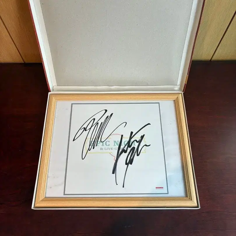 액자에는 얼룩이 약간 있지만 사인 색지 자체는 새상품급입니다.
