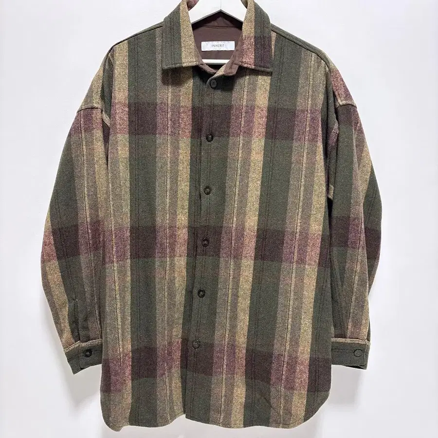 INHERIT 카키 울 두꺼운 원단 셔츠 자켓 오버 사이즈