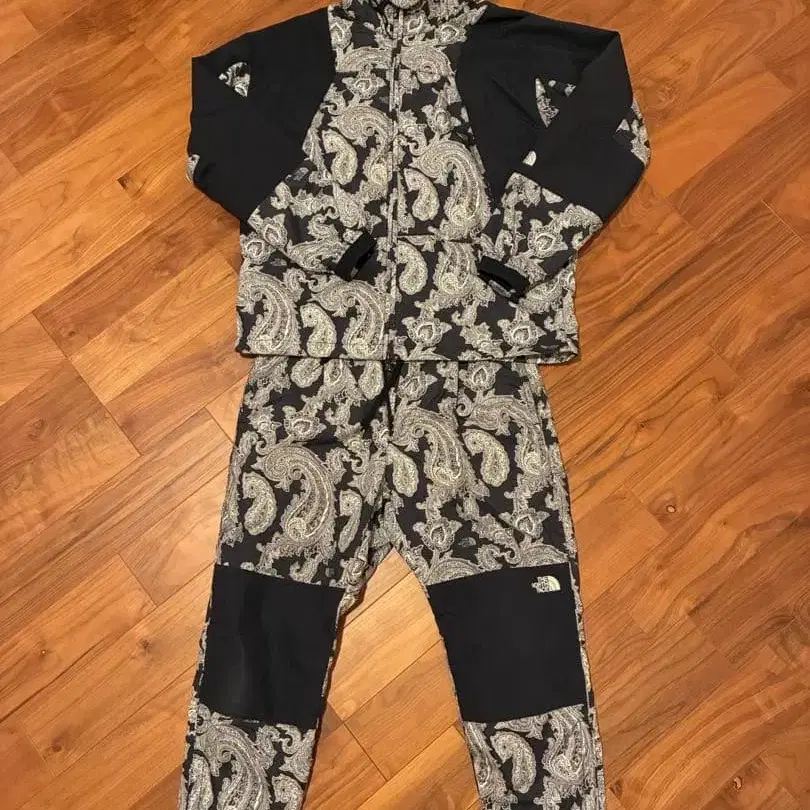 THE NORTH FACE PURPLE LABEL x JOURNAL STANDARD 페이즐리 페인트 마운틴 와이드 후드티와 팬츠 셋업입니다.
