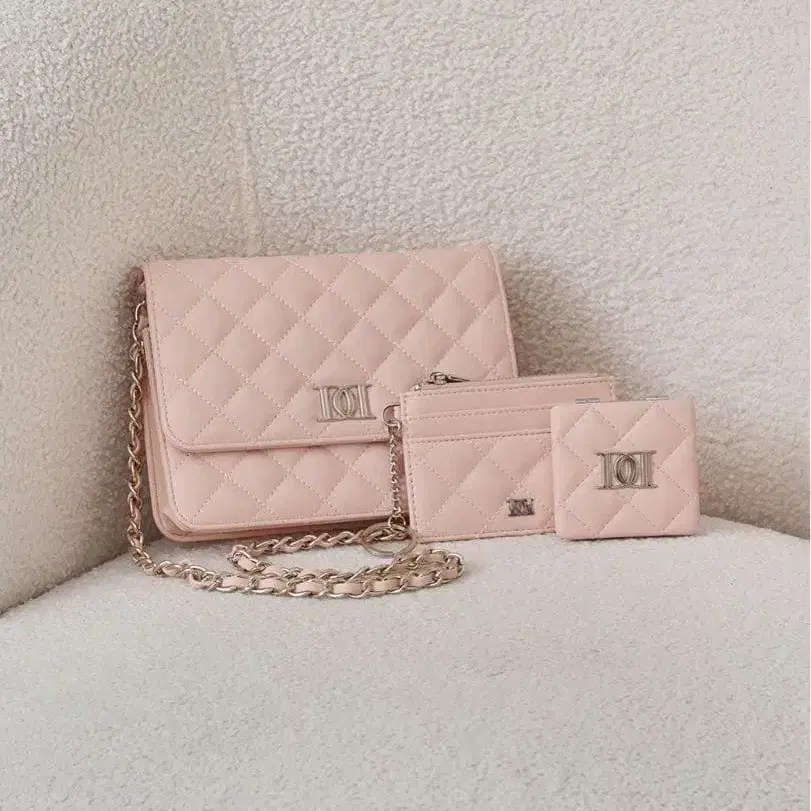 고급스러운 퀼팅 디자인에 DD 부품을 더한, 럭셔리 디자인의 지갑 백 + 카드 케이스 + 컴팩트 거울의 럭셔리 3 아이템 세트!