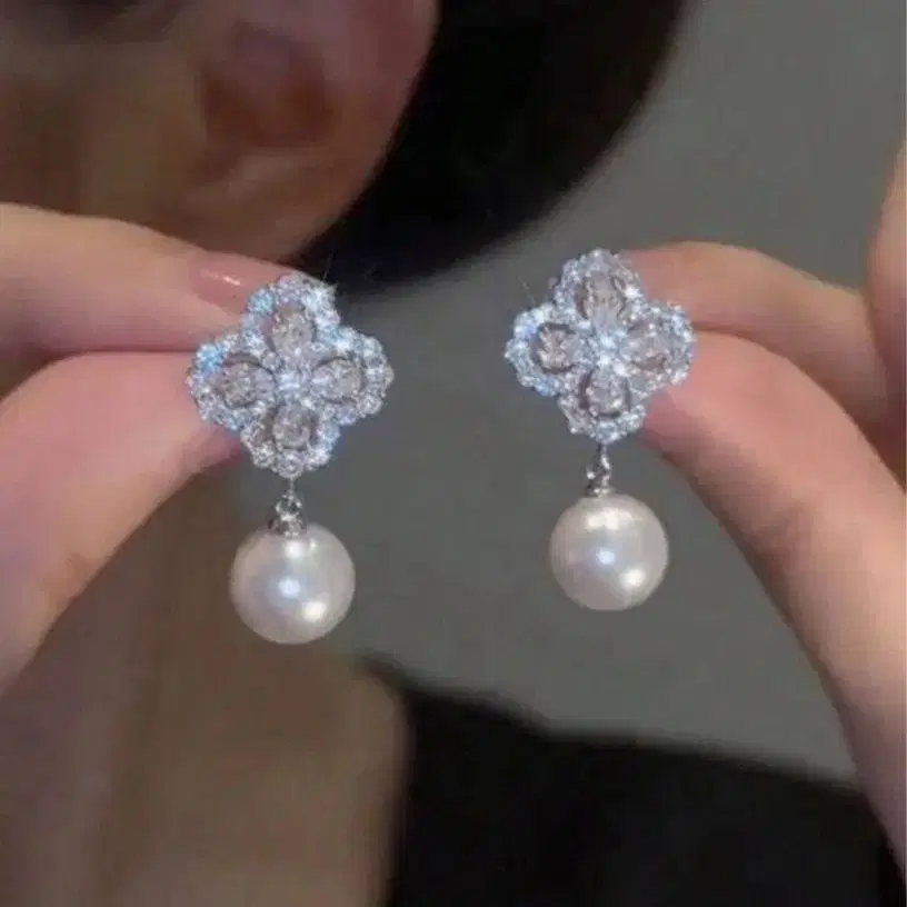 진주와 크리스탈의 화려한 드롭 귀걸이. - 디자인: 꽃 모양의 장식 - 소재: 진주와 크리스탈 - 스타일: 드롭 귀걸이 - 색상: 실버와 화이트 - 사이즈: 약 3cm 길이 방문해 주셔서 감사합니다.