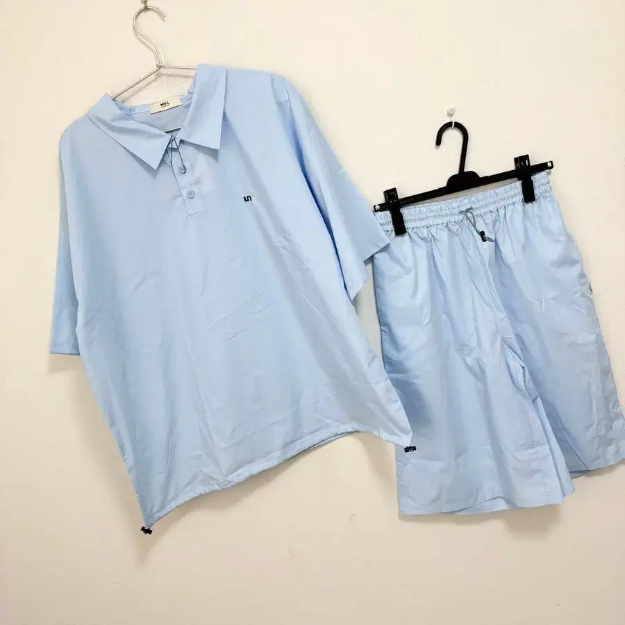 [ Unblend ] 원포인트 자수 피케 셔츠 & 하프 팬츠 셋업 / 룸웨어 모노마트