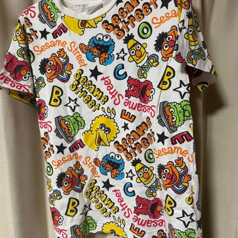 세서미 스트릿의 캐릭터가 디자인된, 면 100%의 M 사이즈 T셔츠.