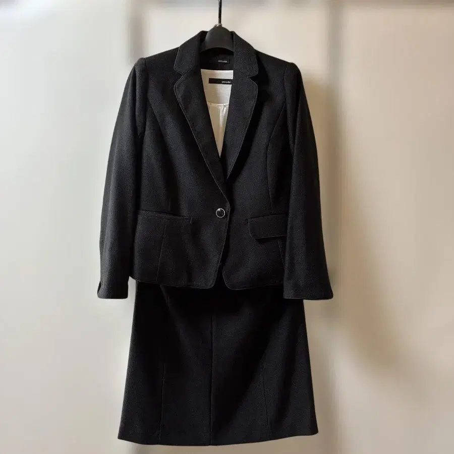 자동 번역되었어요. 원문보기블랙 테일러드 자켓과 스커트, 화이트 쉬폰 블라우스 세트.