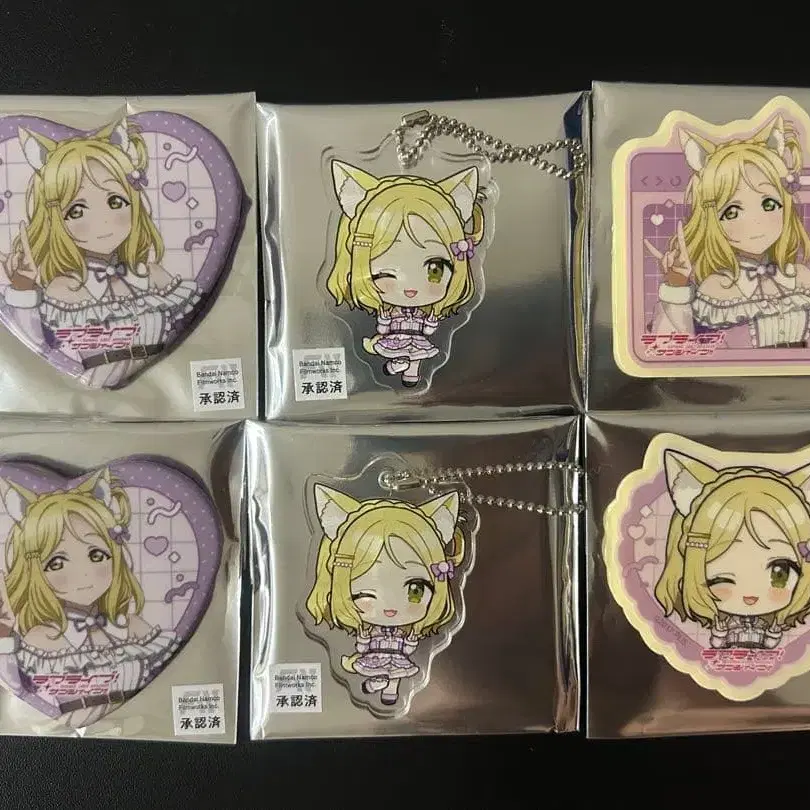 오하라 마리(애니멀 의상) 하트형 캔뱃지 2개, 트레이딩 키링 2개, 트레이딩 클리어 스티커 2개, 총 6점 세트입니다. 즉시 구매 가능. 가격 인하 협상 불가. 개인 보관이므로 예민하신 분의 구매는 삼가해 주십시오. 잘 부탁드립니다. 러브 라이브! 선샤인!! Aqours 오하라 마리 캔뱃지 아크릴 키링 스티커