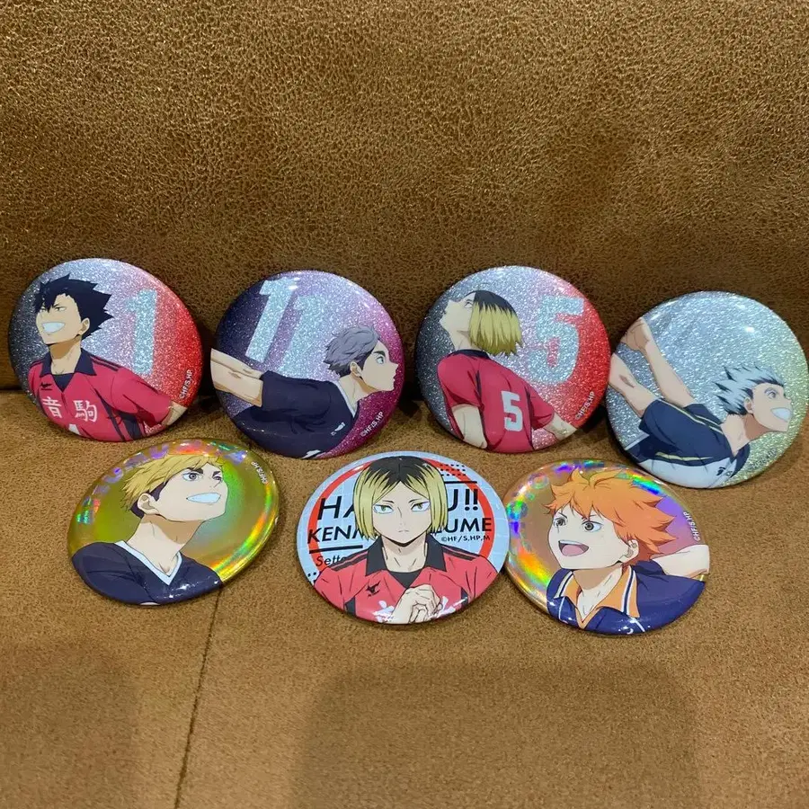 하이큐!! 컬러풀 캐릭터 캔뱃지 7개 세트, 홀로그램 효과 포함.