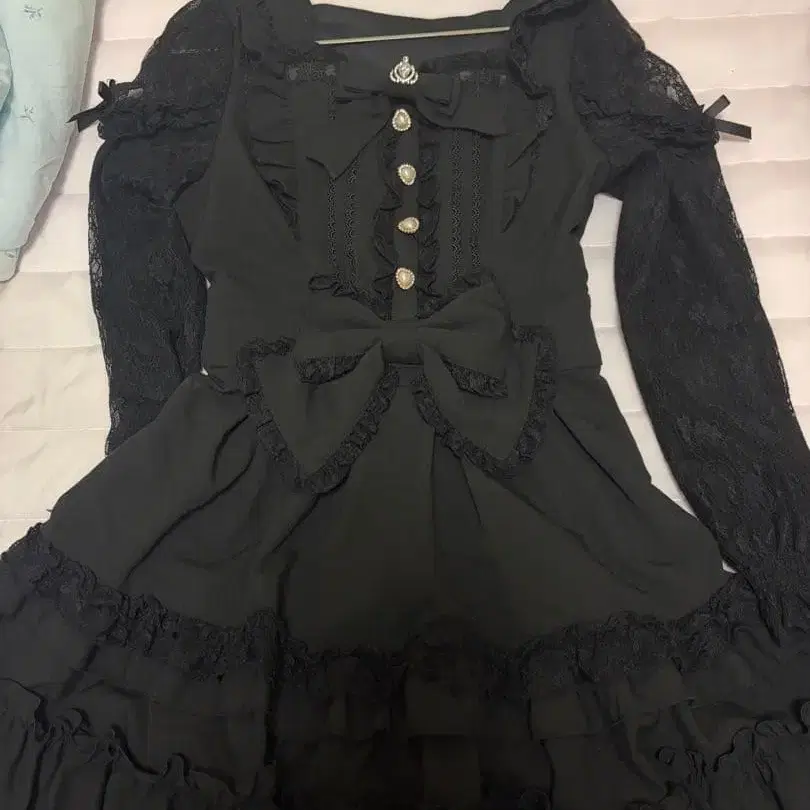 유메텐보 디어마이러브 레이스 겹침 펄 리본 아가씨 원피스