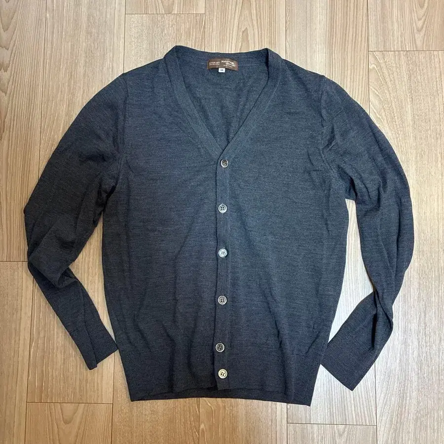 가마쿠라 셔츠의 스테디셀러 아이템, 엑스트라 파인 메리노울 소재의 다크 그레이 가디건입니다. 사이즈는 46입니다.