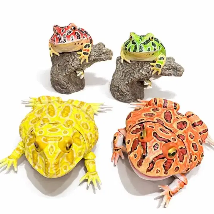 전체 길이 약 70mm의 벨츠노 개구리 피규어, 18곳 가동으로 리얼한 조형.