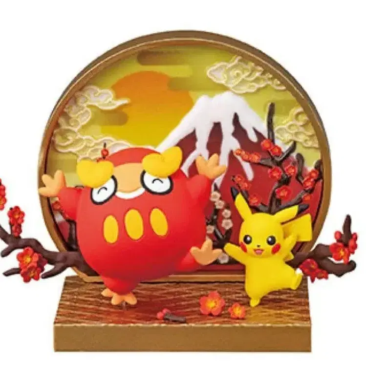 포켓몬스터 포켓몬 센터 창문 디자인 테라리움 리멘트 트레이딩 블라인드 박스 피규어 시리즈 일본풍 컬렉션 후지산 매화꽃 피카츄 달마카 달마 紅白 골드 컬러 디오라마