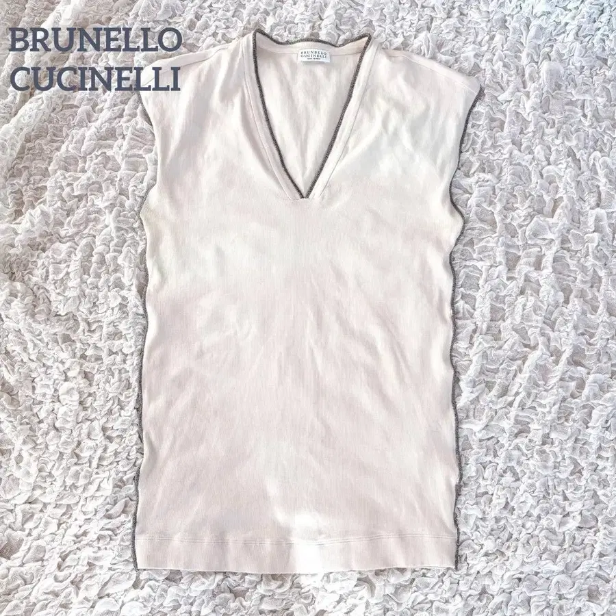 자동 번역되었어요. 원문보기새상품급 브루넬로쿠치넬리 모니레 장식 사이드 라인 리브 티셔츠 M 베이지