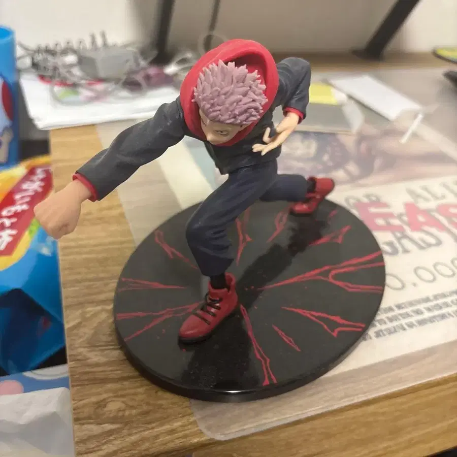 주술회전 캐릭터가 앞으로 달리는 모습을 재현한 피규어. - 캐릭터: 주술회전 피규어 - 포즈: 앞을 향해 달리고 있는 포즈 - 색상: 블랙과 빨간색의 배색 - 베이스: 갈라진 디자인의 원형 베이스 - 의상: 블랙 자켓과 팬츠, 빨간색 스니커즈 방문해 주셔서 감사합니다.