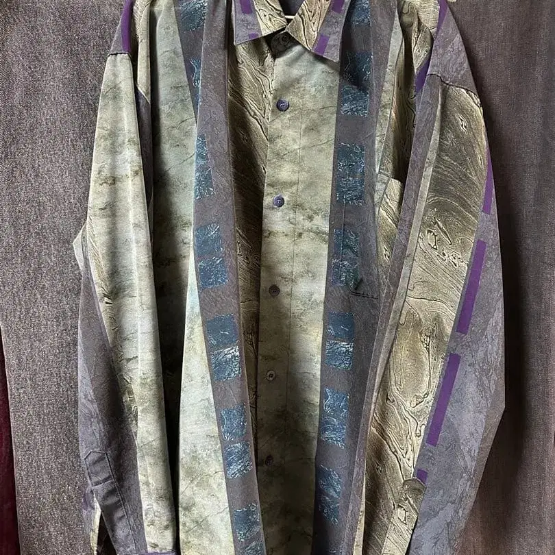 레트로 구제 의류 셔츠 패턴 셔츠 올 패턴 디자인 셔츠 긴팔