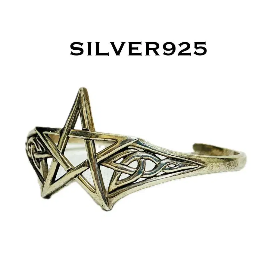 실버 925 뱅글. 센터에 큰 스타 모티브. 임팩트 있는 디자인. 입구 1.5cm 안쪽 둘레 15.4cm 안지름 6.2cm