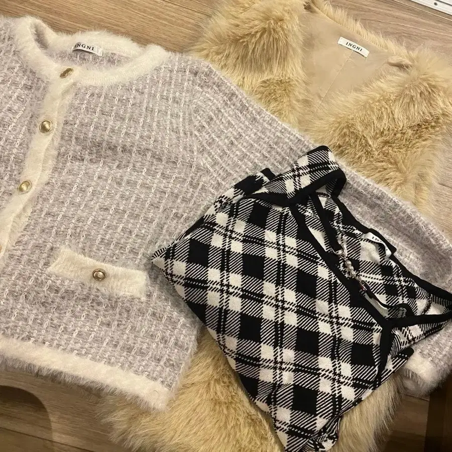 모두 1~2회만 착용 INGNI 이미지 2번째 펄 비트 체크 니트 정가 3,289엔 이미지 3번째 페더 트위드 니트 가디건 정가 3,960엔 이미지 4번째 에코 퍼 베스트 정가 4,290엔 모델 착용 이미지는 5번째 이후 확인 부탁드립니다m(._.)m
