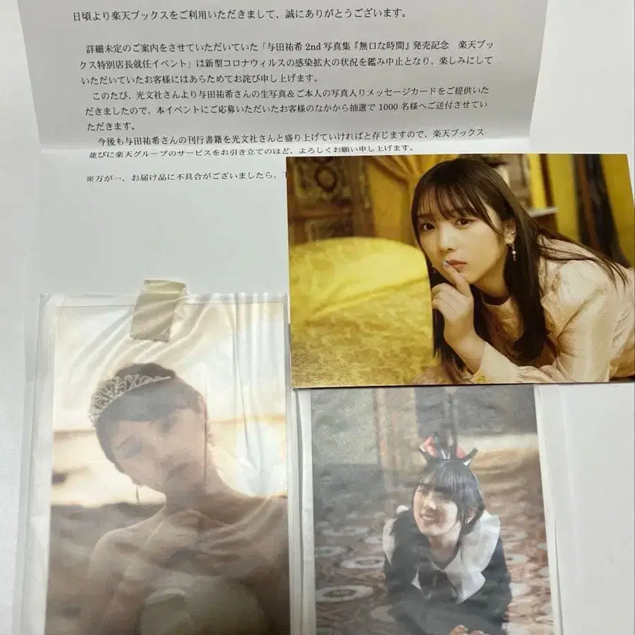 방문해 주셔서 감사합니다. 요다 유키 무구치나 지칸 라쿠텐 북스 이벤트 한정판 브로마이드와 사진이 들어간 메시지 카드입니다. 1000명 한정 상품입니다. 잘 부탁드립니다.