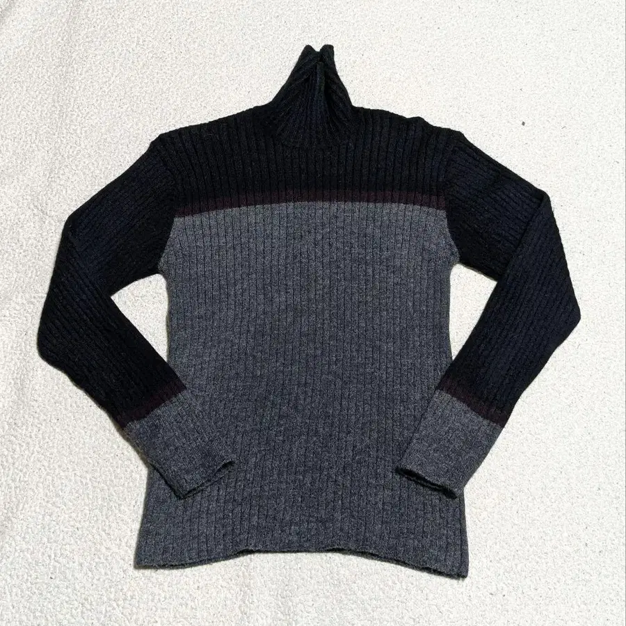 블랙, 퍼플, 그레이 콤비 컬러에 리브 편직 니트가 멋스럽습니다.