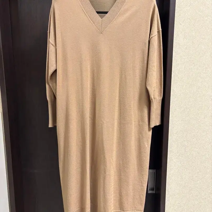 UNFILO 베이지 V넥 니트 롱 원피스 M 사이즈