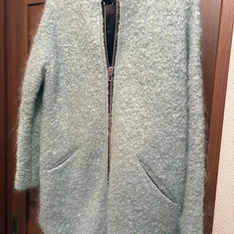 민트 그린 보아 롱 코트 베어 코트
